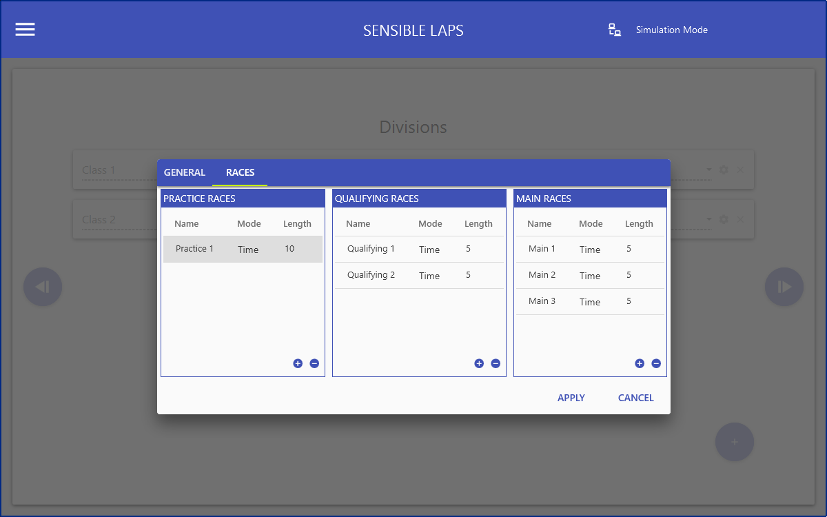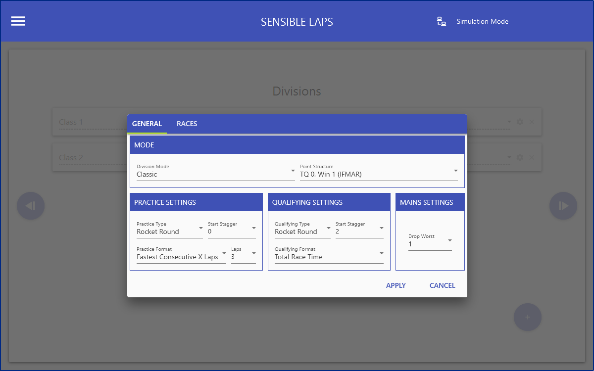 The races tab allows configuration race specific settings for the specified division.