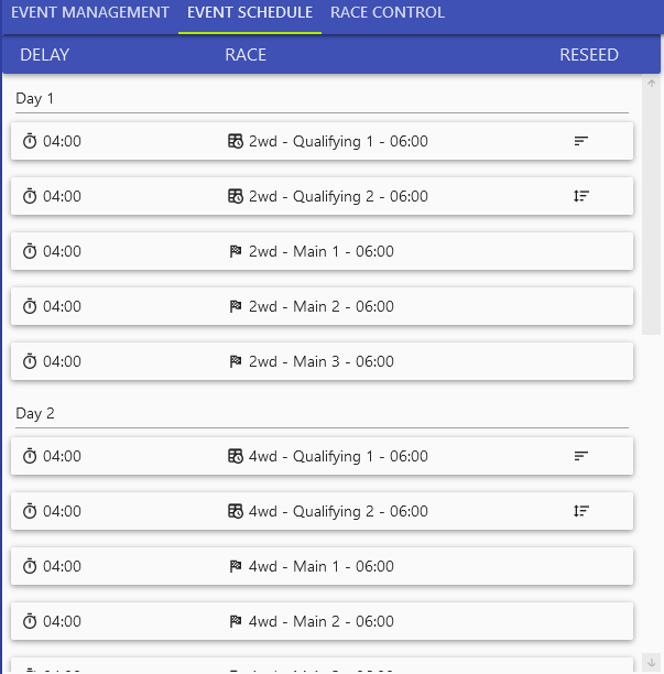 Changing the day will reorder the divisions based on the chosen days and cause a schedule rebuild.