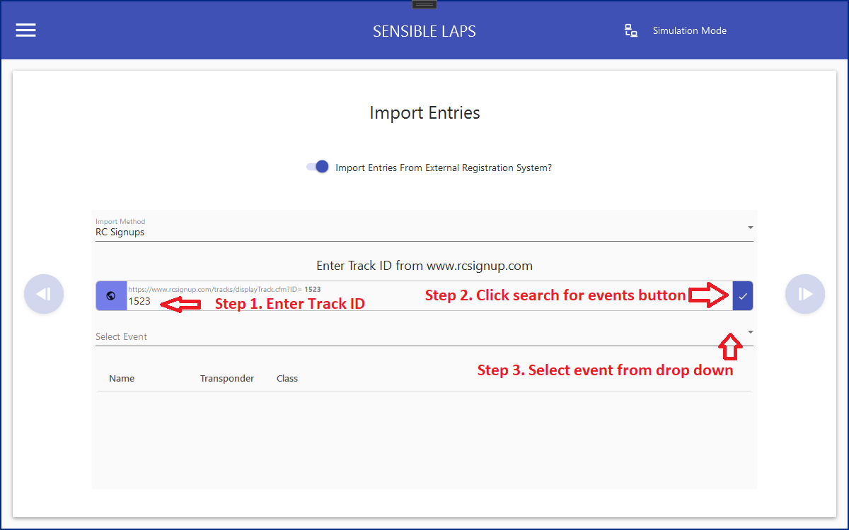 Steps are the same as for RC Signups, except instead of a track id, the url of the clubs hosted joomla events page should be entered.