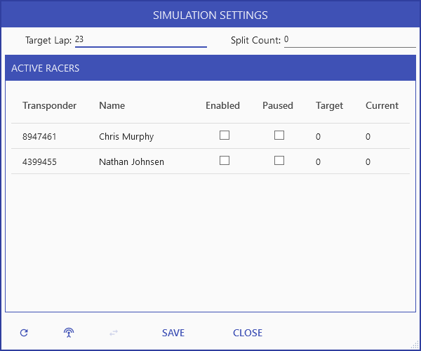 If simulating practice, random entries are taken from the list of known previous contestants. New contestants can be added with the "Add Random Transponder" button