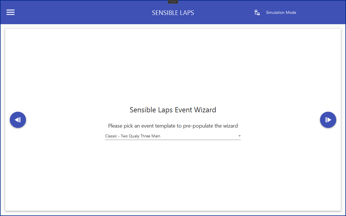 The first step of the event wizard is to choose a template. Any templates saved in the template folder are available in the drop down menu. See Loading and Saving events to learn more. The chosen template simply provides a starting point for the remaining wizard steps.